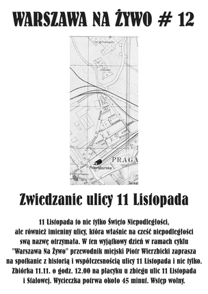 Zbiórka 11.11. o godz. 12.00 na placyku u zbiegu ulic 11 Listopada i Stalowej. Wycieczka potrwa około 45 minut. Wstęp wolny.