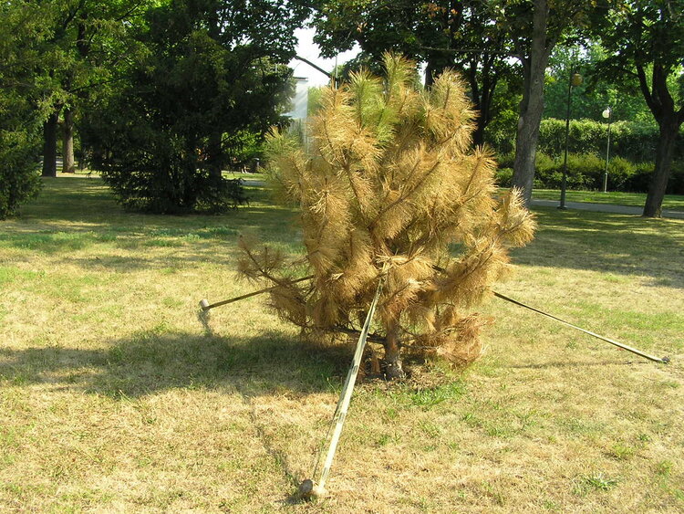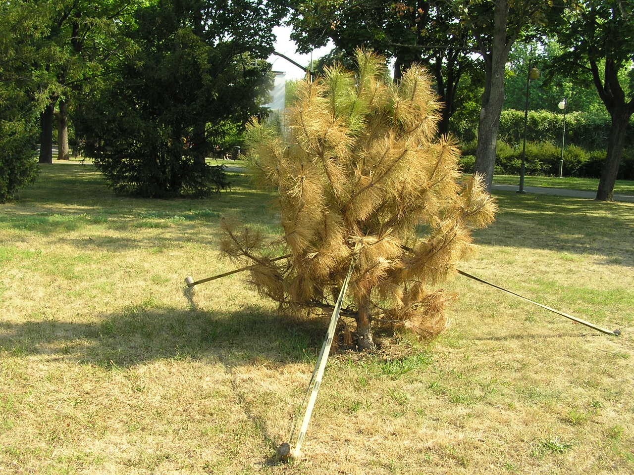 Na eksperckich stronach poświęconych sośnie czarnej można przeczytać, że należy ją podlewać w przypadku przedłużającej się suszy. Starsze zaś drzewa wymagają podlewania tylko wyjątkowo. Trudno wyrokować czy to brak dostatecznego nawodnienia był przyczyną masowego usychania. Wszak były już w złym stanie znacznie przed obecną falą upałów. Samo pochodzenie sosny z lasów śródziemnomorskich powoduje, że drzewko powinno raczej dobrze znosić brak opadów i wysokie temperatury.