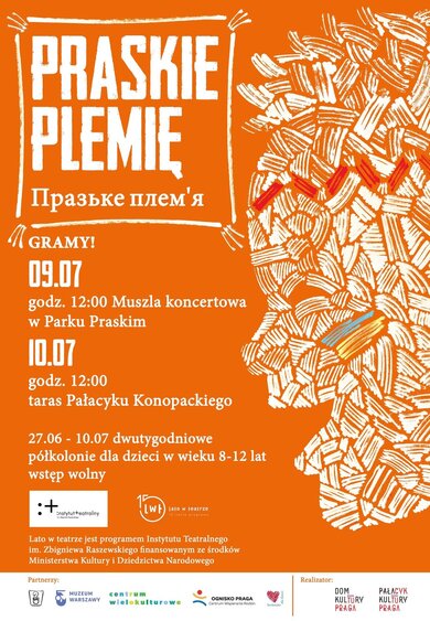 Hej, siemano, dobryj deń, siekiera motyka galaktyka! Zapraszamy na pokazy końcowe warsztatów Lata w teatrze! Zobaczycie cyrkową paradę, mrożące krew w żyłach opowieści z praskich uliczek i szalony plemienny taniec! Pierwszy pokaz „Praskiego Plemienia” odbędzie się w Muszli koncertowej w Parku Praskim 9 lipca o godzinie 12:00. Na drugi zapraszamy do Pałacyku Konopackiego 10 lipca o 12:00. Na oba pokazy wstęp wolny.