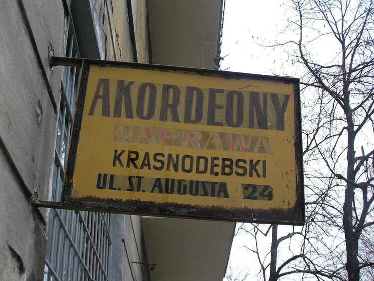 Dawny szyld zakładu naprawy akordeonów działający przez wiele lat przy ulicy Stanisława Augusta 24 na Kamionku został zdemontowany w trakcie remontu elewacji. Sprawą dalszych losów historycznej reklamy zainteresował się radny Marek Borkowski, a odpowiedź jaką otrzymał na złożoną interpelację napawa optymizmem.
