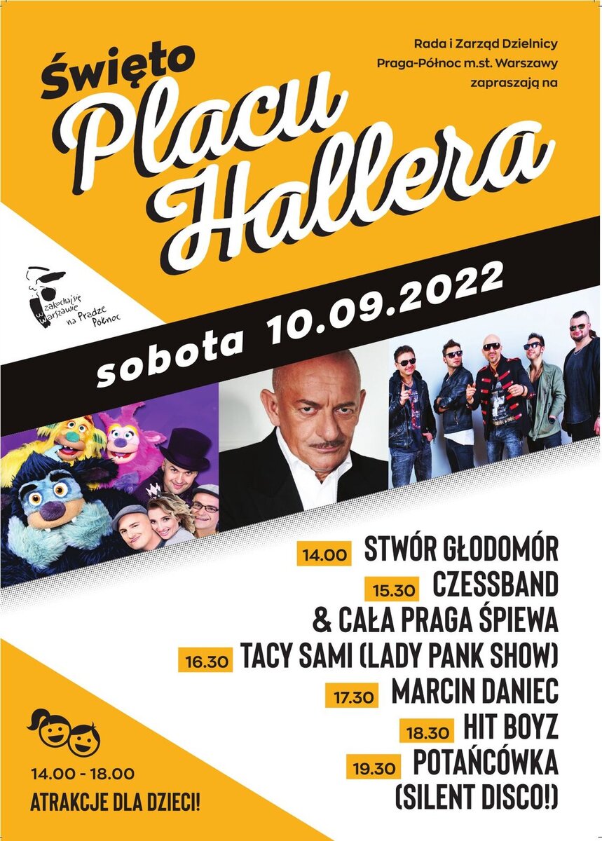 - Jak co roku we wrześniu, tak i w tym roku, zapraszamy na Święto Placu Hallera, które odbędzie się 10 września. To jedno z większych wydarzeń na Pradze II. Zapewniamy świetną muzykę, pełną warszawskiego klimatu i humoru, wiele atrakcji dla najmłodszych oraz dużą dawkę śmiechu - zachęca Urząd Dzielnicy Praga Północ.