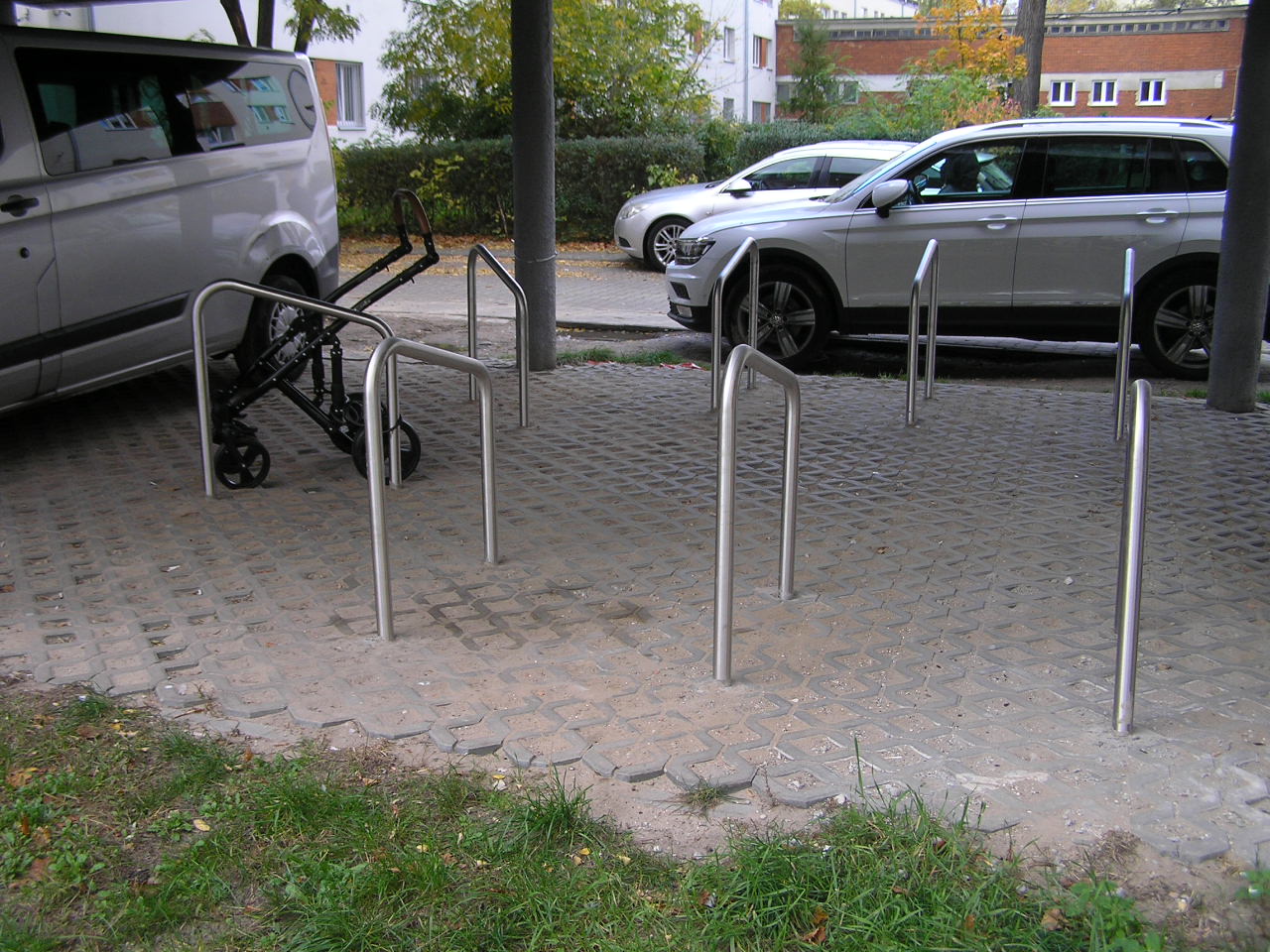 Według autorki projektu stojaki miały zostać ustawione w: "30 lokalizacjach w całej dzielnicy, wyłącznie na nieruchomościach, do których m.st. Warszawa posiada tytuł prawny do dysponowania, do uzgodnienia z projektodawcą w czasie weryfikacji projektu", dlatego nieco dziwi, że zostały ustawione wyłącznie na Grochowie, a część z nich umieszczono bezpośrednio na trawniku...