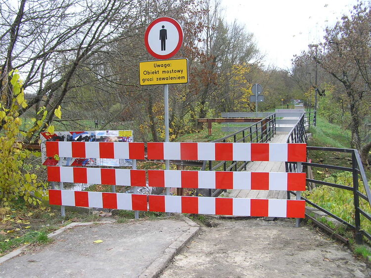 "Uwaga: obiekt mostowy grozi zawaleniem" - znak z taką informacją został umieszczony przed mostkiem zbudowanym nad Kanałem Wystawowym w ciągu ulicy Międzynarodowej. Od wczoraj, aby przejść dalej należy skorzystać z drugiego mostku znajdującego na szczęście kilkadziesiąt metrów od zamkniętego obiektu.