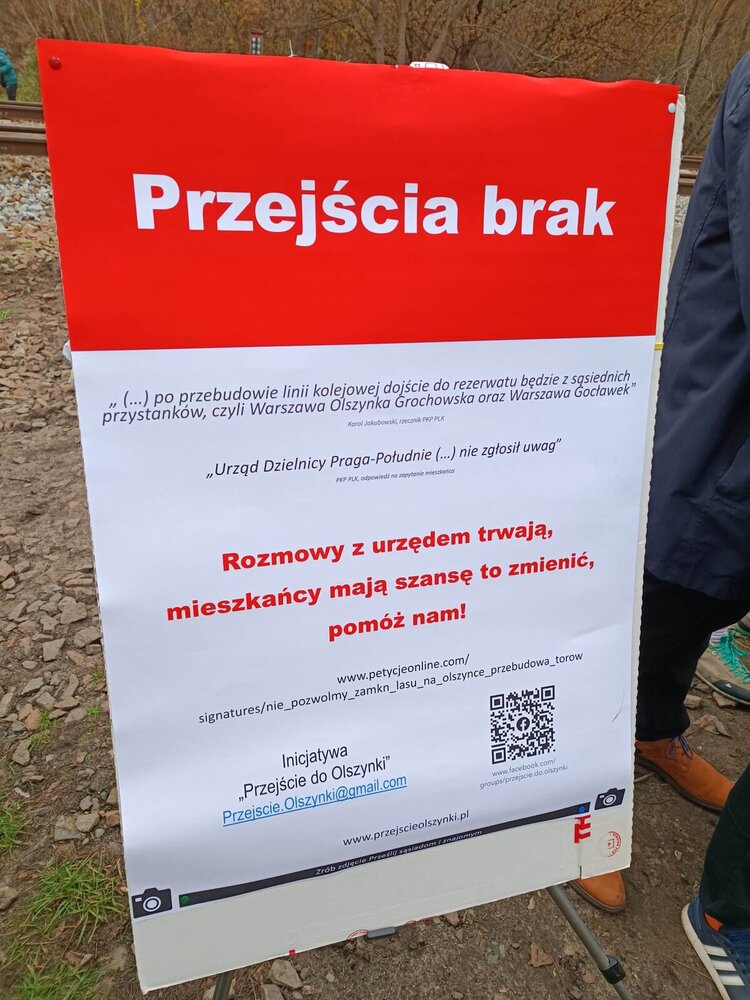 Inicjatywa obywatelska "Przejście do Olszynki" przygotowała petycję o budowę bezpiecznych przejść przez tory, którą można znaleźć i podpisać na stronie: