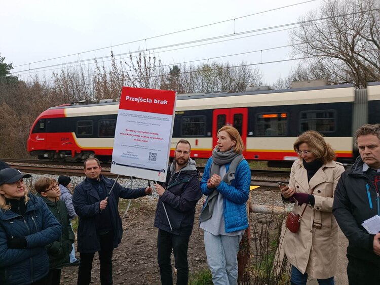 Kilkadziesiąt osób zebrało się dziś przy szlabanie i nieformalnym przejściu przez tory prowadzącym do Rezerwatu Olszynka Grochowska, aby zwrócić uwagę na potrzebę budowy przejść naziemnych - przez linię otwocką i linię dalekobieżną. Spotkanie w obecności mediów zorganizowała inicjatywa obywatelska "Przejście do Olszynki".