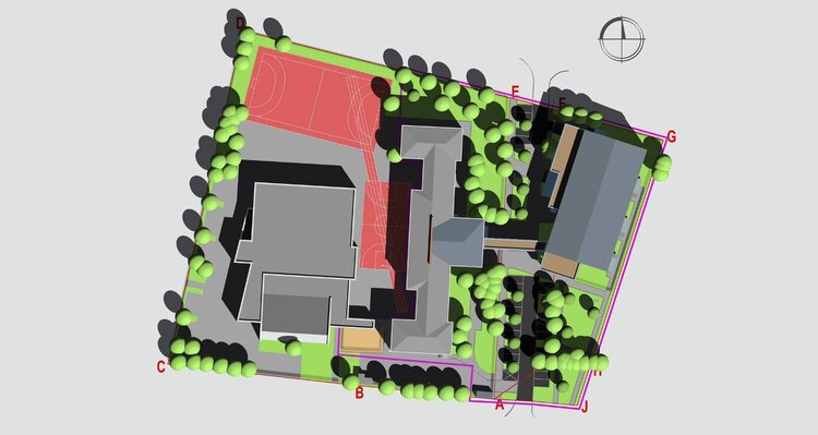 Istniejący budynek zostanie uzupełniony o nowopowstały fragmentu budynku z hallem wejściowym i połączony halą sportową łącznikiem.