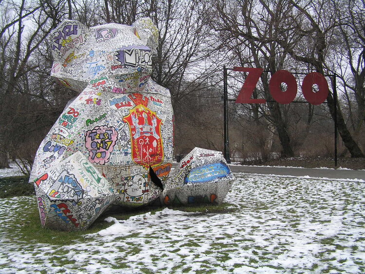 5-metrowy miś pojawił się przed głównym wejściem do Parku Praskiego w 2017 roku. Jego wykonanie i ustawienie pokrył z własnych środków francuski artysta ofiarując go dzielnicy w formie darowizny. Dziś rzeźba jest uszkodzona, co sprawia, że wróciły pytania: co dalej z nowym "symbolem" czy "koszmarem" Pragi?