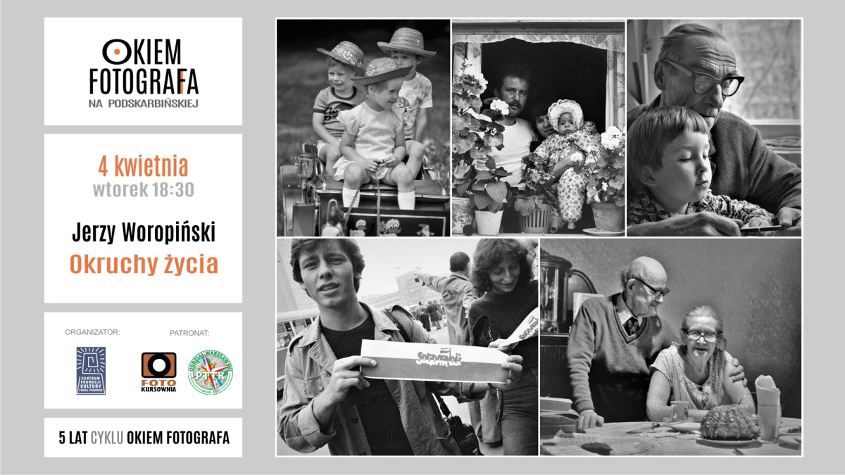 Jurek Woropiński współpracował jako fotoreporter m.in. z Polską Agencją Interpress, KAW, CAF, Tygodnikiem Kulturalnym, Prawem i życiem, National Geographic czy Biurem Promocji Miasta Warszawa. Prowadził studio fotograficzne.Od 2015 roku jest członkiem Związku Polskich Artystów Fotografików w Okręgu Warszawskim.Będzie kilka niespodzianek, także z powodu jubileuszu - 5. urodzin cyklu!Okiem Fotografa - Jerzy Woropiński: Okruchy życia