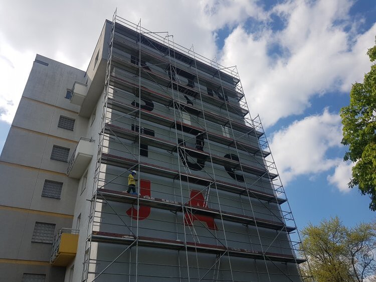 Na budynku przy Szaserów 133 na Grochowie dobiega końca malowanie muralu "Konstytucja". Wcześniej bliźniacze murale powstały m.in. w Poznaniu i Białymstoku. Białostocki mural był już kilkakrotnie dewastowany.