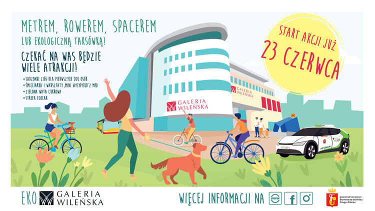 „Metrem, rowerem, spacerem” – pod takim hasłem w Galerii Wileńskiej odbędzie się kolejne wydarzenie w ramach kampanii „EkoWileńska”. W piątek 23 czerwca na klientów czekać będą sadzonki roślin, warsztaty na temat recyklingu i segregowania odpadów. Odwiedzający będą mieli także możliwość obejrzenia od środka nowoczesnej śmieciarki i elektrycznej taksówki.