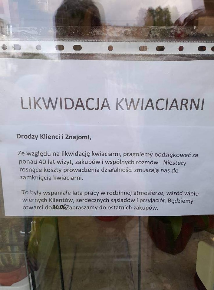 Właścicielki (a przynajmniej panie za nie się podające) twierdzą, że głównym powodem likwidacji kwiaciarni nie jest wzrost cen, a jakiś śmieć, który donosił na samochód dowożący zaopatrzenie.Szkoda, że nie poszedł siedzieć za nękanie.