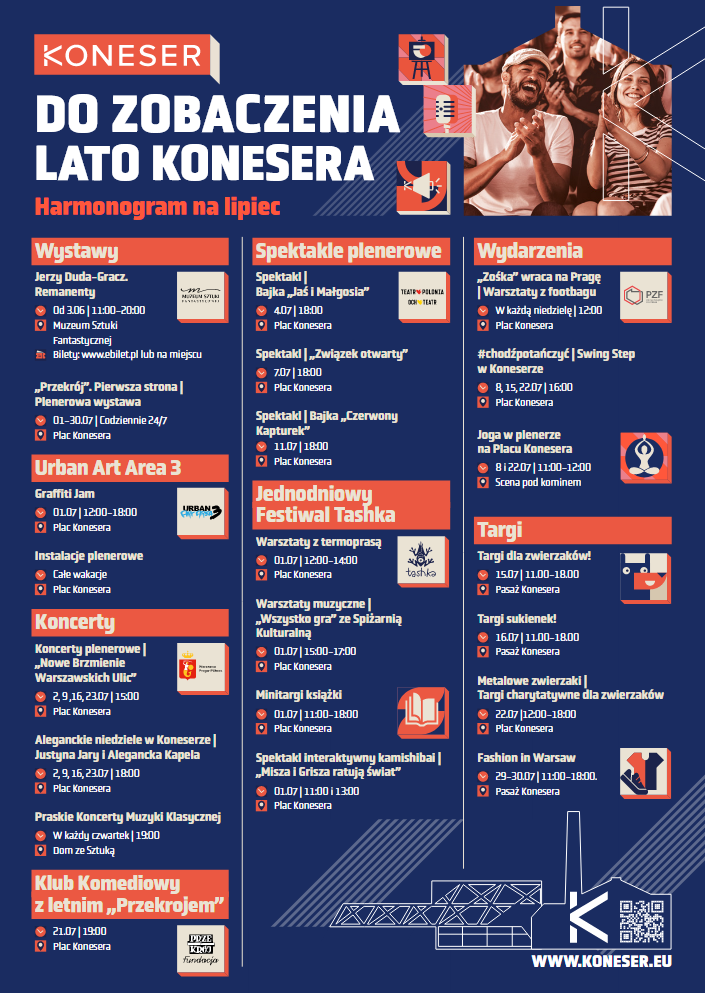 Szczegółowy harmonogram wydarzeń Lata Konesera można sprawdzić na koneser.eu oraz w mediach społecznościowych Centrum Praskiego Koneser i na afiszu.