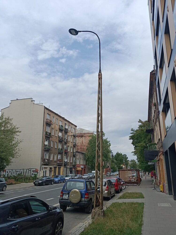 Słupy trakcyjne o konstrukcji kratownicowej pochodzą z 1921 roku i są pamiątką zbudowanej na ulicy Radzymińskiej linii tramwajowej. W tym samym okresie powstała wówczas pętla końcowa tuż przy istniejącym do dziś wiadukcie kolejowym. Ostatni tramwaj przejechał "małą" Radzymińską w marcu 1968 roku.