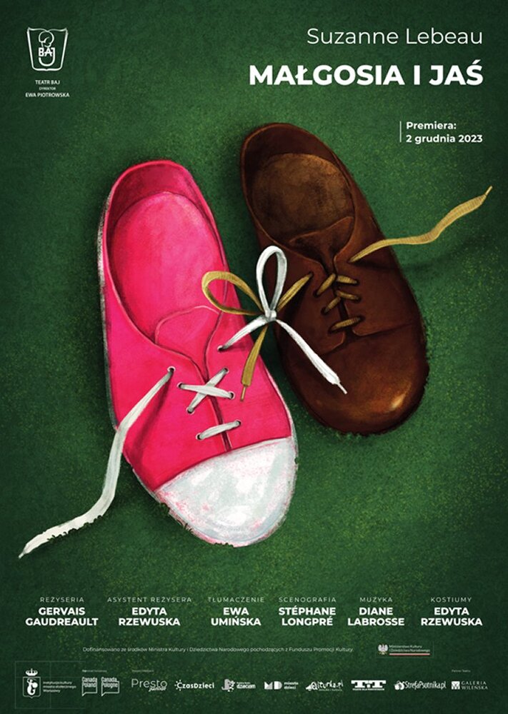A już dziś mamy ogromną przyjemność zaprosić na premierę bardzo wyjątkowego polsko-kanadyjskiego spektaklu "Małgosia i Jaś" Suzanne Lebeau, który wyreżyseruje Gervais Gaudreault. Spektakl zostanie zaprezentowany podczas uroczystych obchodów Jubileuszu 95-lecia Teatru Baj.