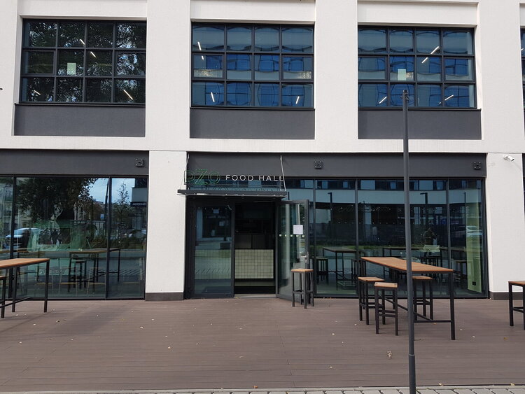 PZO Food Hall zajął parter wzniesionego nowego budynku biurowego - Fabryka PZO II i od niego przyjął swoją nazwę jednak warto w tym miejscu wspomnieć, że dokładnie na tej działce w roku odzyskania niepodległości została wzniesiona hala produkcyjna dla Zakładów Mechanicznych inż. Stefana Twardowskiego.