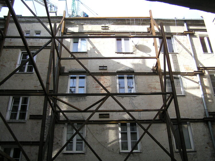 Sam budynek przy Mińskiej 33 na czas budowy został mocno zabezpieczony i trzeba mieć nadzieję, że konstrukcja okaże się skuteczna.