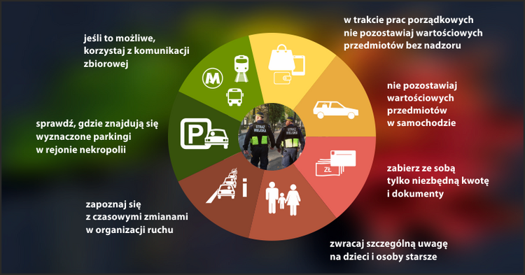 Zbliżające się Święto Zmarłych jest dla większości z nas okazją do odwiedzin grobów swoich bliskich. Na cmentarze wybieramy się często w towarzystwie rodzin i znajomych. Zakupy zniczy, wiązanek i kwiatów sprawiają, że skupieni na nich niekiedy zapominamy o własnym bezpieczeństwie. Doskonale wiedzą o tym złodzieje, dla których ten okres staje się czasem przestępczych żniw. Kradzione są dekoracje grobów, a niekiedy także ich całe elementy. Bywa, że dochodzi do dewastacji nagrobków. Ściśnięci w tłoku stajemy się również łatwym łupem dla kieszonkowców. Ofiarami przestępców padają na cmentarzach także seniorzy, którzy samotnie odwiedzają bliskich. W pozostawianych na parkingach samochodach złodzieje potrafią wybić szyby, by ukraść wartościowe przedmioty pozostawione na widoku. Właśnie po to, by przeciwdziałać przestępczym i chuligańskim zdarzeniom strażnicy miejscy organizują w tym okresie działania prewencyjne pod kryptonimem „Hiena”. Do kontroli stołecznych cmentarzy i ich okolic zostanie skierowanych kilkuset funkcjonariuszy. Działania będą prowadzone także w nocy. W tym celu patrole będą wyposażone w noktowizory, które ułatwiają obserwację w ciemności. Ich przydatność potwierdzają doświadczenia funkcjonariuszy z poprzednich lat, gdy ujęto osoby kradnące wieńce m.in. na cmentarzu w Marysinie Wawerskim. Na pobłażliwość ze strony strażników nie mogą liczyć także osoby nietrzeźwe.
