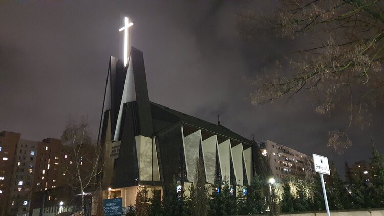 Krzyż swieci prosto w okna! Kościół znajduje bardzo bloku. Na zdjęciach tej odległości nie widac.