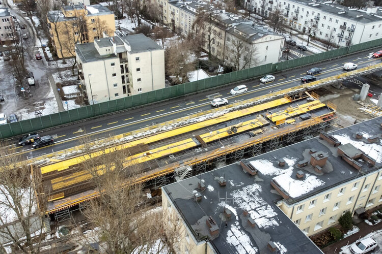 Tempo prac przy przebudowie Trasy Łazienkowskiej na Saskie Kępie nie zwalnia. Na nowych podporach powstaje już płyta pierwszego z wiaduktów – północnego. Widać też konstrukcje ekranów akustycznych wzdłuż al. Stanów Zjednoczonych – mają one chronić mieszkańców przed hałasem drogowym.