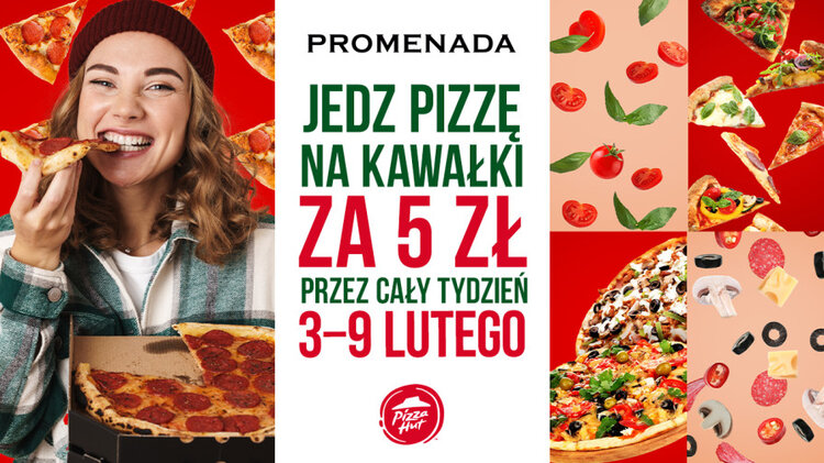 Świętuj Międzynarodowy Dzień Pizzy z Promenadą! Już od 3 do 9 lutego tylko w warszawskiej galerii pizzomaniacy będą mogli skorzystać z wyjątkowej okazji w restauracji Pizza Hut. Jedz pizzę na kawałki za jedyne 5 zł przez cały tydzień!