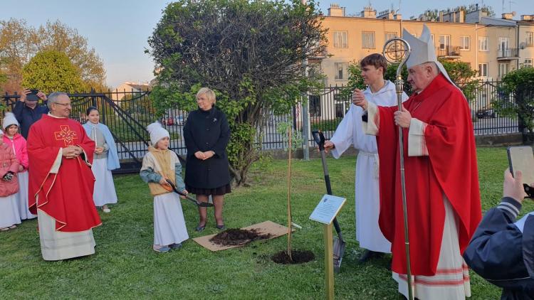 Przed kościołem na Placu Szembeka posadzono dziś pierwszą na terenie diecezji warszawsko-praskiej jabłoń w ramach akcji "Po owocach ich poznacie". Drzewko upamiętnia rodzinę Ulmów, która stała się znakiem męczeństwa i niezłomnej postawy w obliczu zła.