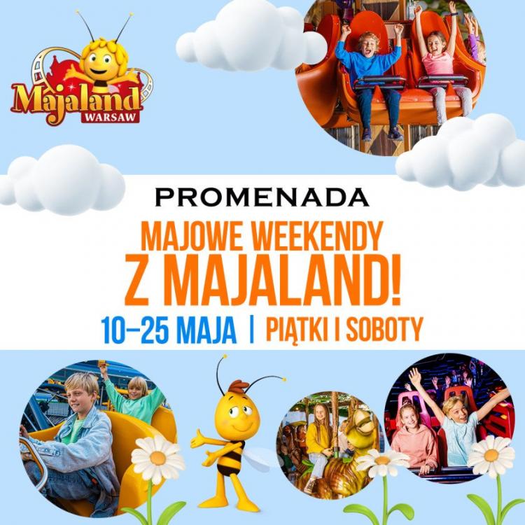 W każdy piątek i sobotę (10-11, 17-18, 24-25 maja) klienci centrum będą mieć szansę by zdobyć voucher do Parku Rozrywki Majaland na zakup 2 biletów w cenie 1! W dniach od 10 do 25 maja każda osoba, która zrobi zakupy w Promenadzie za minimum 200 zł, udokumentowane na maksymalnie dwóch paragonach może odebrać swoją nagrodę! Ten specjalny bilet jest ważny w połączeniu z co najmniej jednym, innym, płatnym biletem normalnym zakupionym w kasie parku Majaland Warszawa. Voucher ważny jest do 30.06.2024 r.