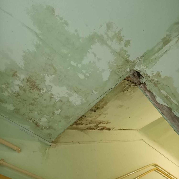Przeciekający dach w praskiej kamienicy. Czy budynek doczeka się w końcu remontu?