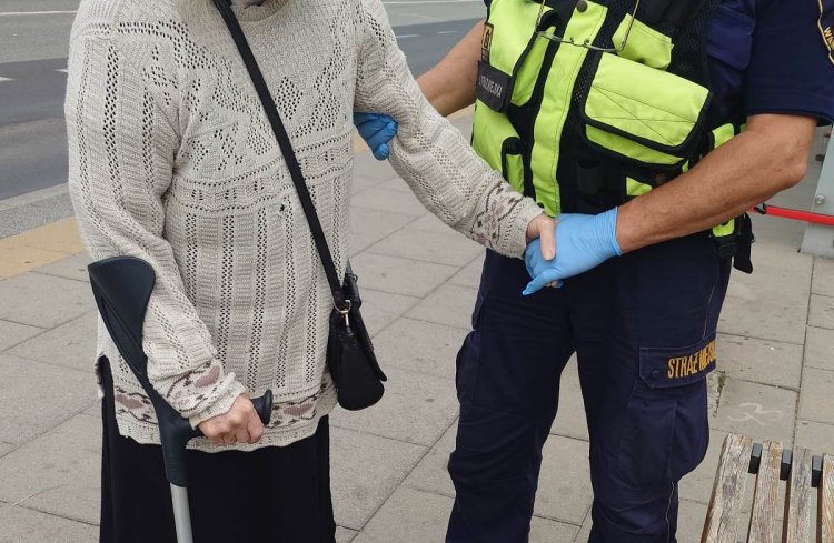 Dochodziła 13:00 w czwartek, 22 sierpnia, gdy strażnicy miejscy z VII Oddziału Terenowego otrzymali zgłoszenie, że na przystanku autobusowym przy ulicy Międzynarodowej przebywa starsza kobieta z zanikami pamięci. Po przybyciu na miejsce funkcjonariusze zastali seniorkę w wieku około 80 lat. Starsza pani na pytanie, jak się czuje, odpowiedziała, że „źle i wszystko ją boli”. Strażnicy wezwali na miejsce pogotowie ratunkowe. W trakcie oczekiwania na przyjazd karetki starali się ustalić jej dane osobowe, niestety seniorka nie tylko nie pamiętała, jak się nazywa i gdzie mieszka, ale też nie zdawała sobie sprawy z tego, gdzie się znajduje. Strażnicy, za zgodą seniorki, przejrzeli zawartość jej torebki. Wśród wielu różnych kartek był przekaz pocztowy z jej danymi i kartka z numerem telefonu do jej wnuczka. Powiadomiony o odnalezieniu babci podziękował za pomoc i poinformował, że przyjedzie na miejsce interwencji. Przybyły na miejsce patrol policji potwierdził dane seniorki oraz to, że jest poszukiwana jako osoba zaginiona. Ratownicy z pogotowia po przebadaniu starszej pani stwierdzili, że nie wymaga hospitalizacji.