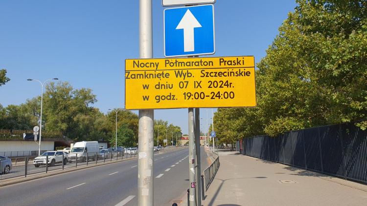 W czasie półmaratonu, od około godziny 19:00 do 22:00 zamknięty będzie most Świętokrzyski. Z kolei w godzinach od 20:00 do 24:00 z ruchu wyłączona zostanie również jezdnia mostu Poniatowskiego prowadząca w stronę Grochowa. Kierowcy jadący od strony centrum będą musieli zjechać z przeprawy na Wisłostradę. Na drugim brzegu na most będzie można dostać się tylko z alei Zielenieckiej. W tych samych godzinach prowadzący nie zjadą z mostów Łazienkowskiego (w stornę Wawra) i Siekierkowskiego na Wał Miedzeszyński (w obu kierunkach). Z kolei kierowcy Wałem Miedzeszyńskim od strony Gocławia dojadą tylko do Trasy Łazienkowskiej.