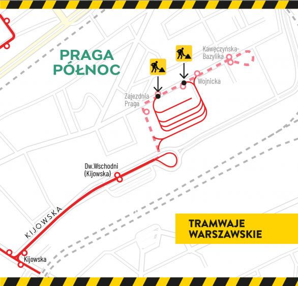 W związku z pracami torowymi na ulicy Kawęczyńskiej przez trzy październikowe weekendy 5-6, 12-13 oraz 19-20 będzie wyłączony ruch tramwajowy od pętli DW. WSCHODNI - KIJOWSKA do pętli KAWĘCZYŃSKA - BAZYLIKA. Na czas prac uruchomiona zostanie zastępcza linia autobusowa Z13.