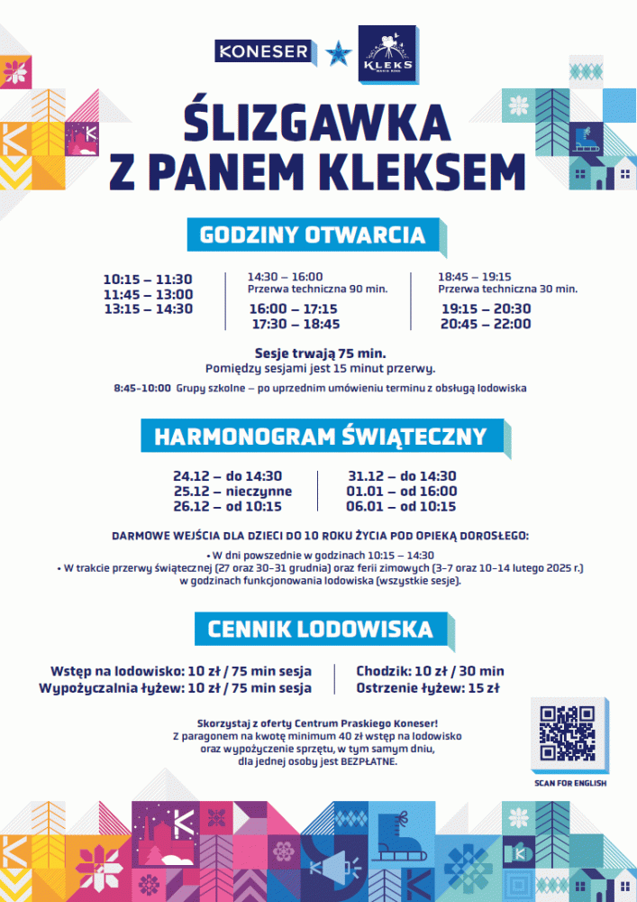 Więcej informacji o Ślizgawce z Panem Kleksem i wydarzeniach odbywających się w Centrum Praskim Koneser można znaleźć na stronie internetowej koneser.eu oraz profilach w mediach społecznościowych.