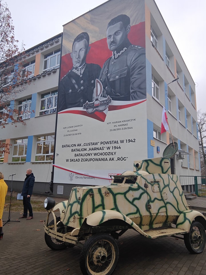 Na ścianie Szkoły Podstawowej Nr 279 im. Batalionów AK "Gustaw" i "Harnaś" przy ul. Cyrklowej 1 na Gocławiu został odsłonięty mural upamiętniający patronów placówki. Jest to już trzeci mural, który ozdobił ściany szkół na terenie Pragi Południe tej jesieni.