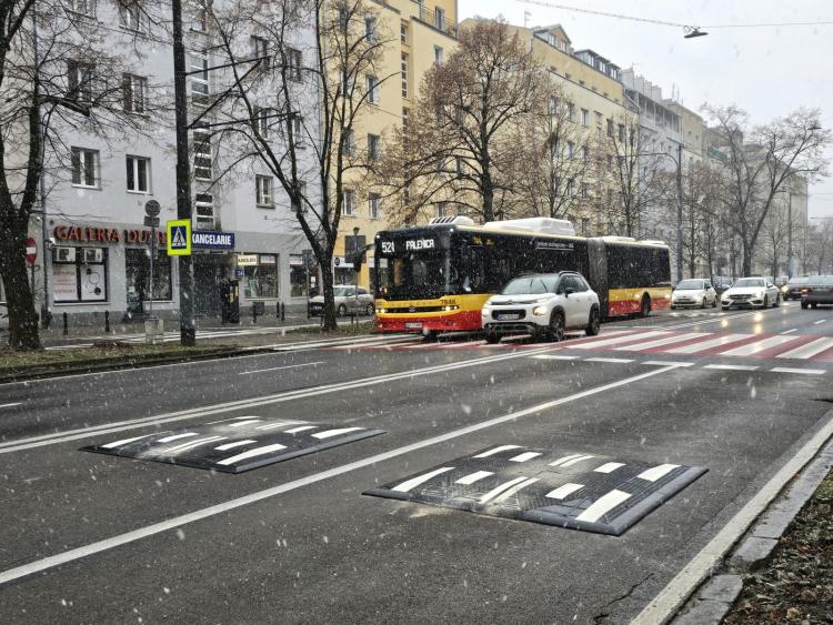 Zebra w tym miejscu w przeprowadzonym audycie bezpieczeństwa otrzymała najniższą ocenę "0". Tak niski wynik wynika przede wszystkim z kształtu al. Waszyngtona - prosta i szeroka droga z torami tramwajowymi po obu stronach. Progi - jak informuje ZDM - są rozwiązaniem doraźnym. Będą tam do czasu kompleksowej przebudowy ulicy, którą w ramach przebudowy torowiska planują Tramwaje Warszawskie. Do tego czasu zapewnią jednak pieszym większe bezpieczeństwo podczas przekraczania al. Waszyngtona.