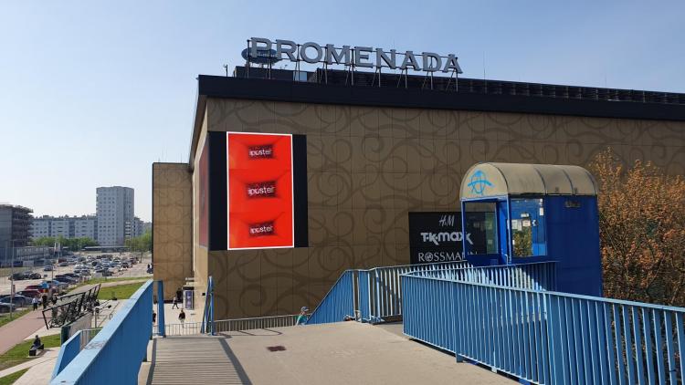 Na fasadzie CH Promenada od strony ul. Ostrobramskiej uruchomiono niedawno największy w Polsce ekran 3D. - To technologia na światowym poziomie - jak na Times Square w Nowym Jorku, Shibuyi w Tokio czy ulicach Seulu – teraz także w Warszawie! Zerknij w górę, zatrzymaj się na chwilę... i zanurz się w nowej erze reklamy! - zachęca swoim profilu CH Promenada.