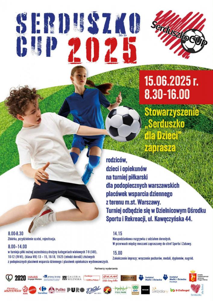 Serduszko CUP to impreza sportowa dedykowana podopiecznym warszawskich placówek wsparcia dziennego - świetlic środowiskowych, klubów młodzieżowych, podopiecznym pieczy zastępczej i ośrodków szkolno-wychowawczych itp. W tym roku impreza planowana jest na dzień 15 czerwca na Dzielnicowym Ośrodku Sportu i Rekreacji przy Kawęczyńskiej 44.
