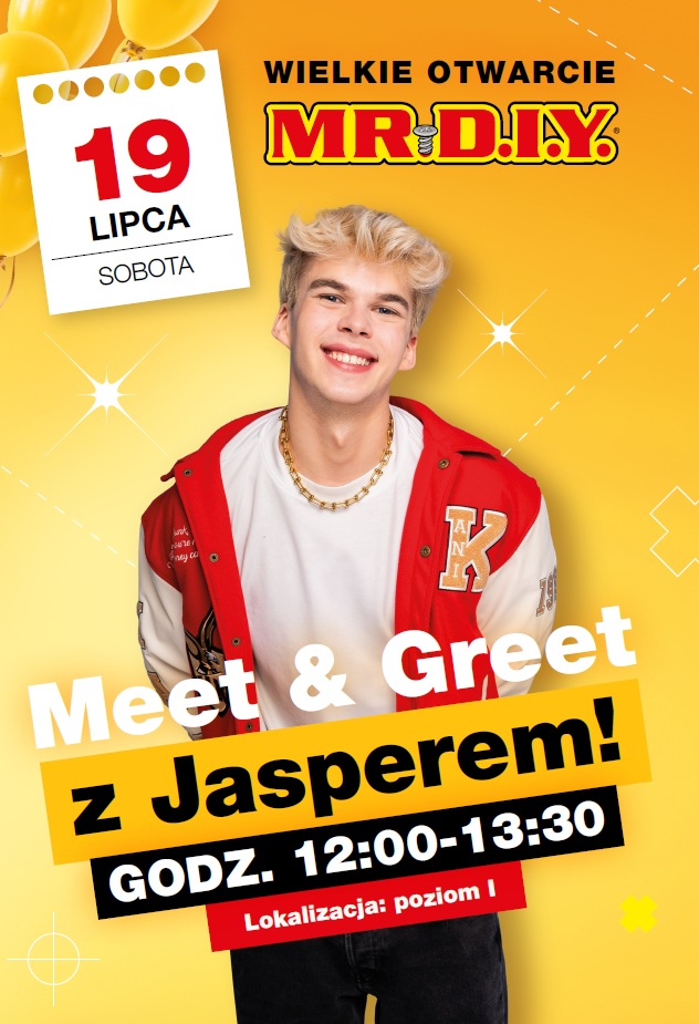 Sobota, 19 lipca, to dzień, na który szczególnie czekają fani Jaspera. W godz. 12:00–13:30 odbędzie się Meet & Greet, podczas którego będzie można porozmawiać, zrobić zdjęcie i zdobyć autograf influencera. Następnie, w godz. 13:30–14:00, Jasper wręczy prezenty wybranym klientom, którzy zrobią zakupy w nowo otwartym sklepie MR.DIY. To wyjątkowa okazja, by spotkać twórcę znanego z pozytywnej energii i kreatywnych treści w mediach społecznościowych.