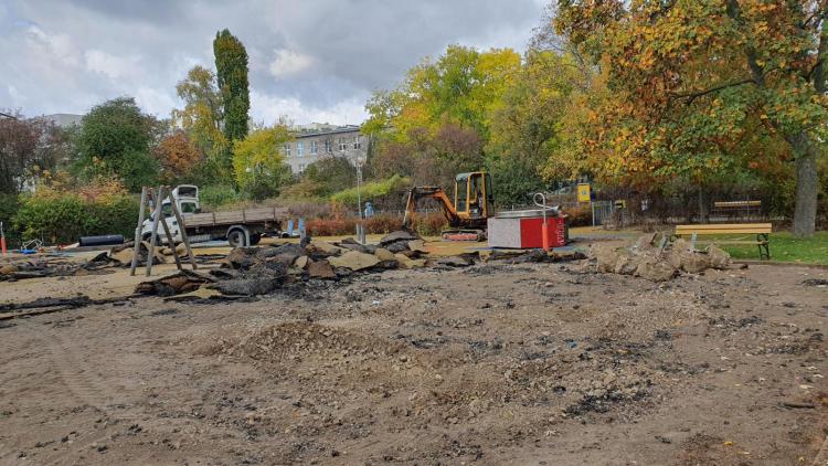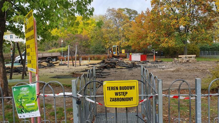 Plac zabaw w parku przy ul. Podskarbińskiej w remoncie
