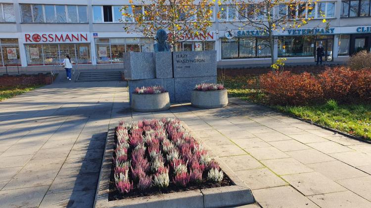Za sprawą nasadzeń wykonanych przez pracowników Zarządu Oczyszczania Miasta, rondo Waszyngtona nabrało jesiennego charakteru. W donicach pojawiły się wrzosy i ozdobne trawy, które będą cieszyć oko przez kilka najbliższych miesięcy. Nie zapomniano również o patronie ronda - przed jego pomnikiem zasadzono kolorowe wrzosy, dodając miejscu wyjątkowego uroku.