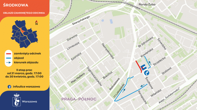 Rozpoczyna się długo zapowiadana modernizacja ulicy Środkowej. Już w środę, 25 lutego, o godzinie 7:00 zamknięty zostanie pierwszy fragment - od Kowieńskiej do Strzeleckiej. To początek dużej przemiany jednej z najważniejszych ulic Nowej Pragi.