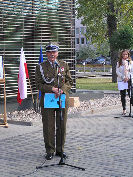 Następnie głos w imieniu kombatantów zabrał major Jerzy Michalski - żołnierz 21. Warszawskiego Pułku Piechoty "Dzieci Warszawy", który przybliżył zgromadzonym gościom historię pułku oraz jego udział w walkach we wrześniu 1939 roku. Szczególnie dużo miejsca w tej wypowiedzi zostało poświęcone pułkownikowi Stanisławowi Sosabowskiemu - dowódcy 21. pułku "Dzieci Warszawa" i bohaterskiemu obrońcy niezdobytej grochowskiej "Reduty Skrzyżowanie" w czasie walk we wrześniu 1939 roku.
