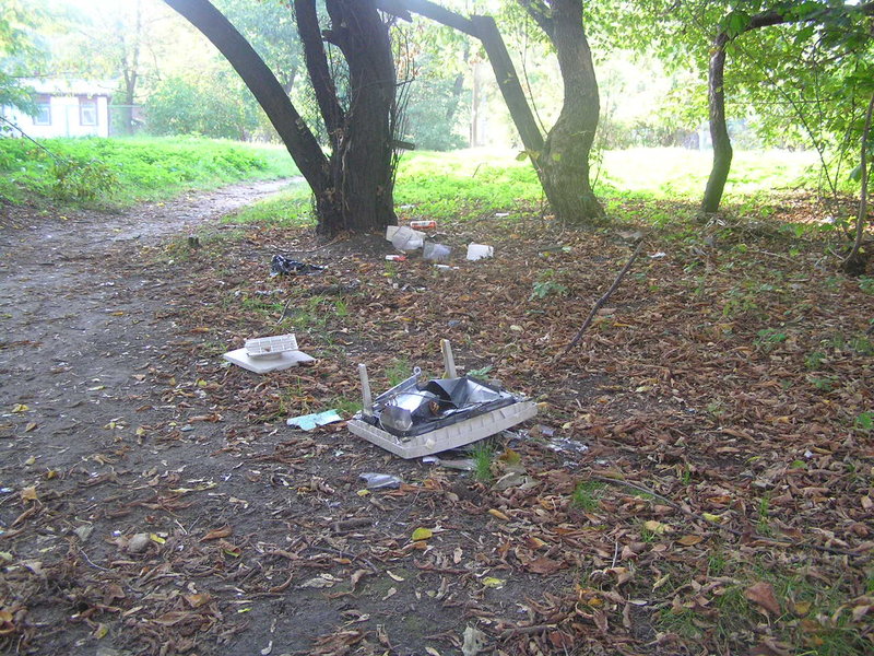 Wysypiskiem śmieci stają się dwa wydeptane skróty - przejścia pomiędzy ulicami: Kwatery Głównej a Podolską na wysokości ulicy Sztabowej i Styrskiej. Ten drugi, jak widać po śladach, służy jako terenowa droga dla samochodów...