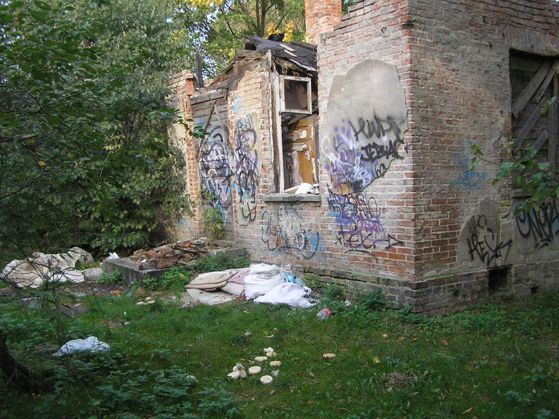 Zdewastowane ruiny domu, gruz, szkło, rozbity monitor, butelki a nawet wózek sklepowy zastaliśmy udając się pod wskazany adres poproszeni o interwencję przez jedną z mieszkanek Gocławka.
