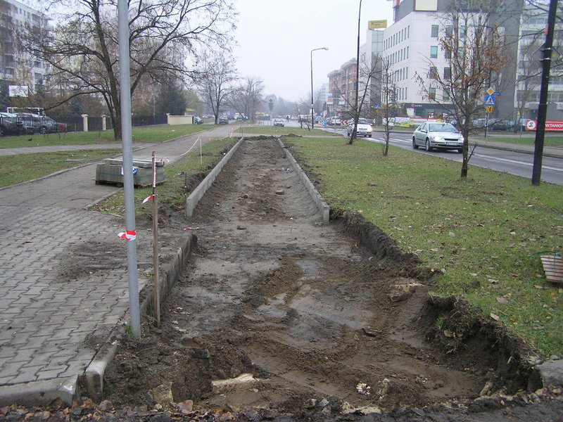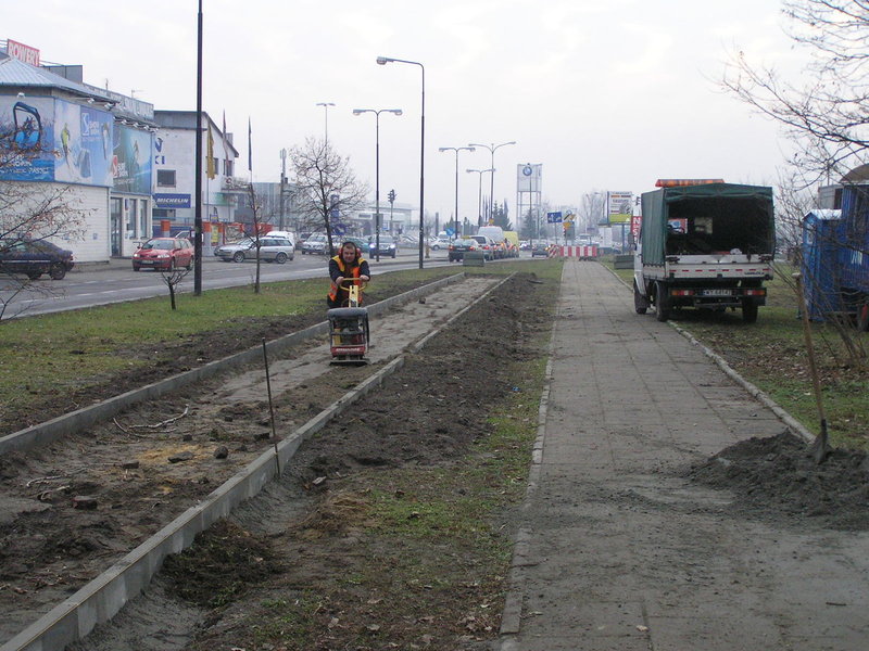 Nowa ścieżka, przy której trwają już mocno zaawansowane prace zostanie wykonana z asfaltobetonu gr. 3 cm na podbudowie z betonu asfaltowego gr. 7 cm. Z uwagi na panujące warunki atmosferyczne nasadzenia zostaną wykonane w przyszłym roku.