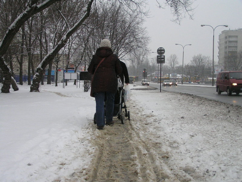 Czy ktokolwiek z osób decydujących, które chodniki mają być odśnieżone próbował kiedyś torować drogę wózkiem w kopnym śniegu?