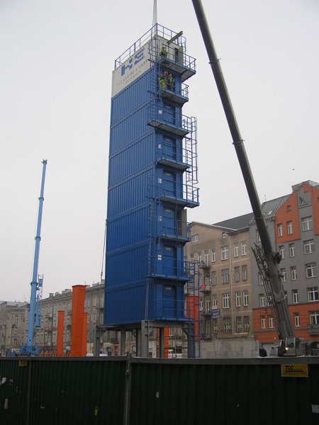 Prace, choć nieco opóźnione, jak widać cały czas są kontynuowane, czego efektem jest m.in. wysoka wieża ustawiona na wysokości ulicy a stanowiąca zaplecze techniczne do wkrótce uruchamianych tarcz.