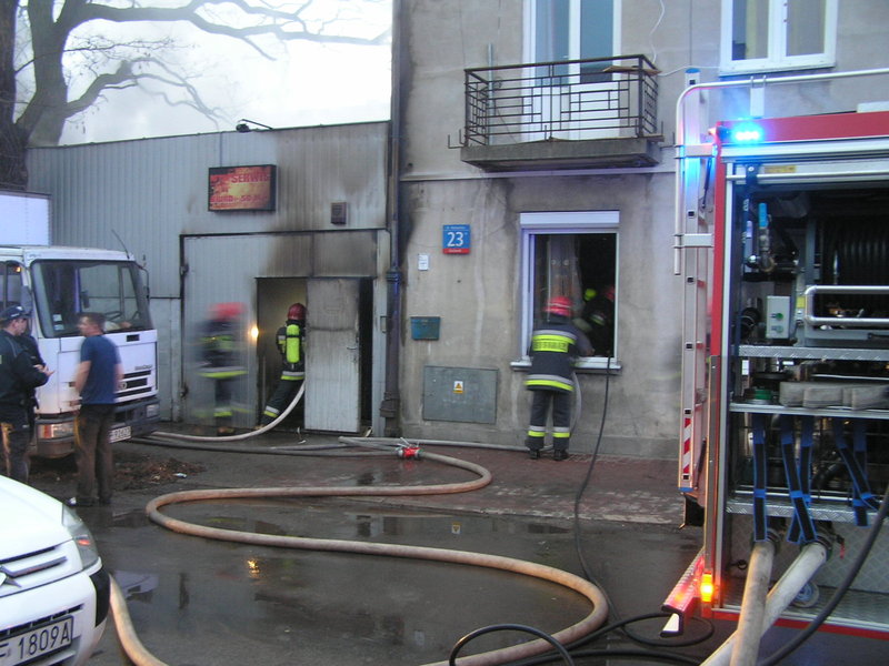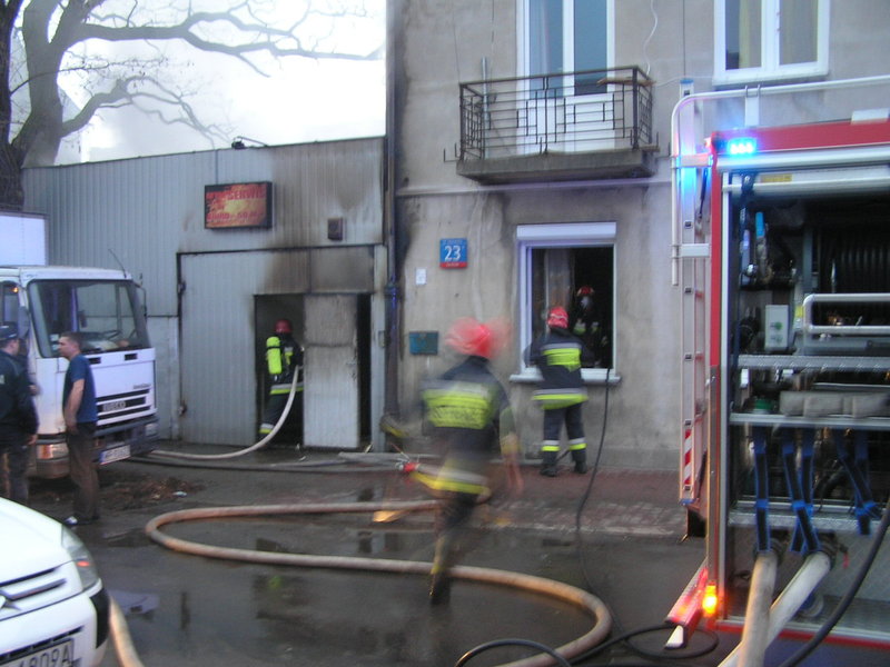 Ogień pojawił się w budynku magazynu, w którym składowane były łatwopalne materiały. Z uwagi na niebezpieczeństwo wybuchu m.in. butli z gazem udało się dość szybko ewakuować mieszkańców pobliskiej kamienicy pod nr 23.