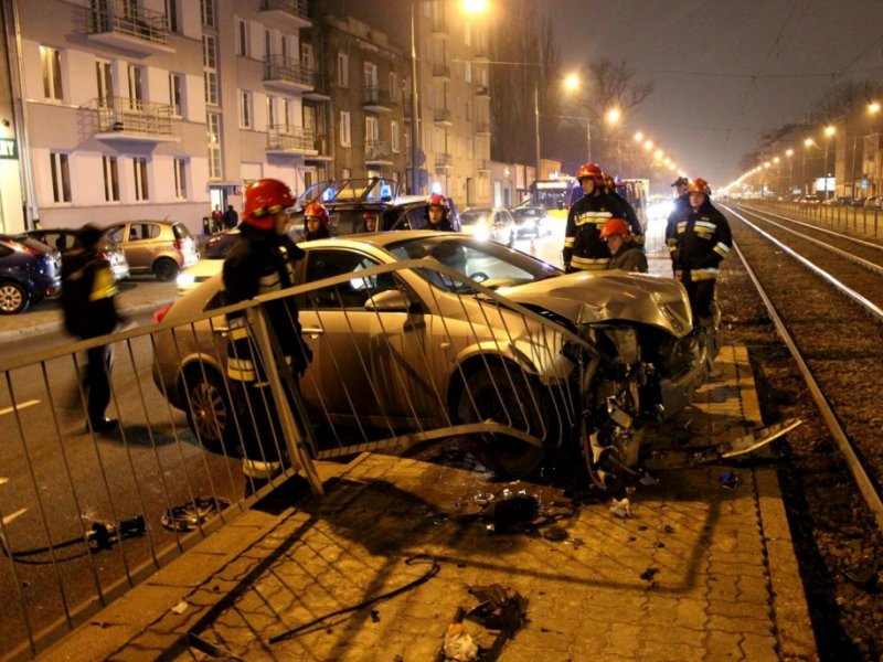 Tuż na wprost okien budynku Urzędu Dzielnicy Praga Południe, na ulicy Grochowskiej, 12 grudnia br. w godzinach popołudniowych kierujący samochodem osobowym Nissan Primera stracił panowanie nad pojazdem i z impetem wbił się w metalowe barierki odgradzające jezdnię od torów tramwajowych.