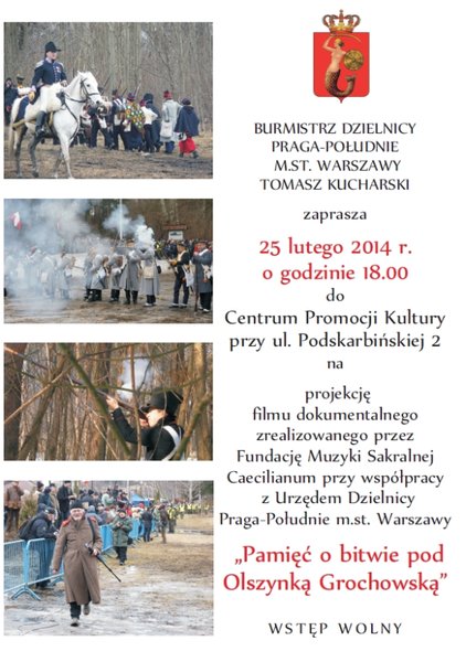 - 18.00 premierowa projekcja filmu pt.: „Pamięć o Bitwie pod Olszynką Grochowską 1831 r.”