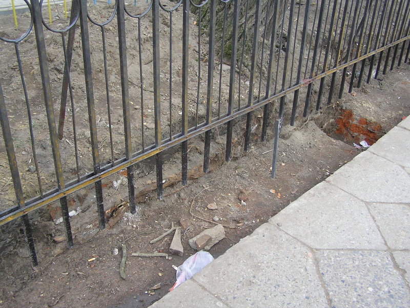 Już jesienny demontaż ponad 100 - letniego metalowego ogrodzenia wzbudził liczne pytania i niepokój lokalnych społeczników. Nie dość, że mieszkańców nikt nie powiadomił o tym fakcie, to jeszcze sposób jego przeprowadzenia - poprzez mechaniczne odcięcie był daleki od ideału.
