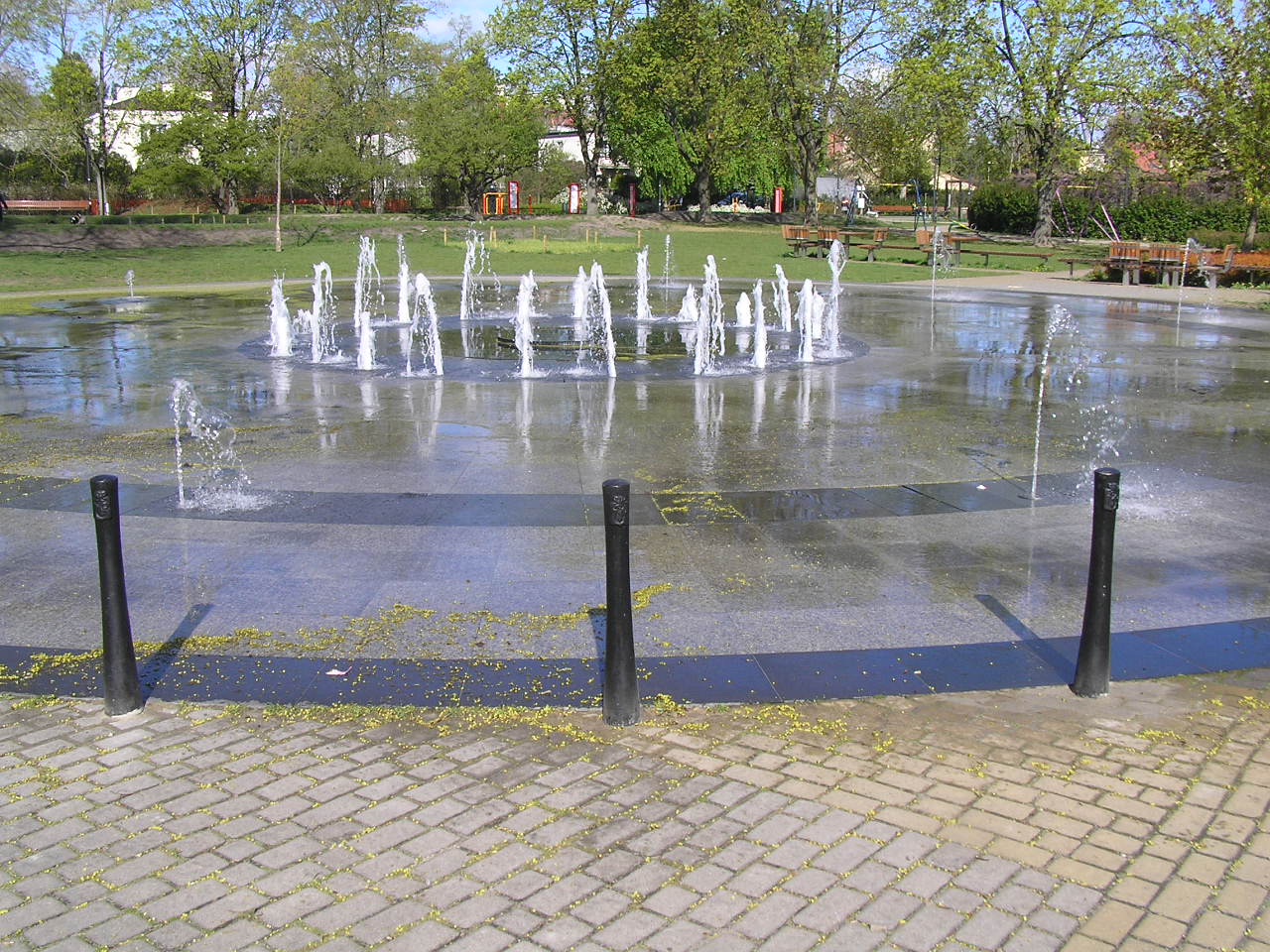 Fontanna w parku Znicza na Grochowie została w ostatnich dniach zabezpieczona słupkami. Mają one chronić fontannę przed najechaniem na jej delikatną konstrukcję samochodem, a do takich zdarzeń dochodziło już w praskich parkach kilkakrotnie.